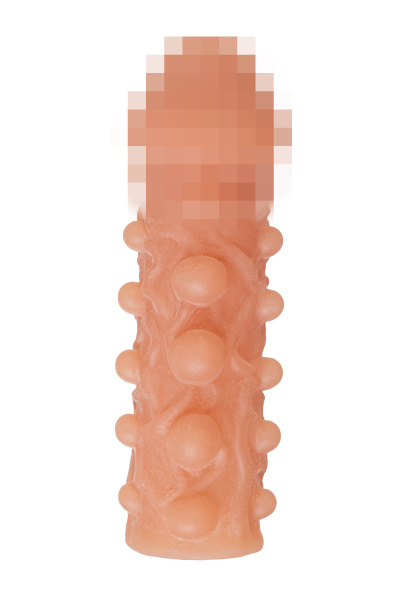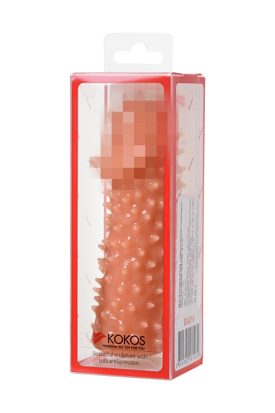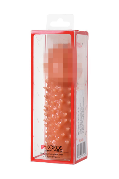 Насадка KOKOS реалистичная с дополнительной стимуляцией, TPE, телесная, 15.6 см с крупными пупырышками